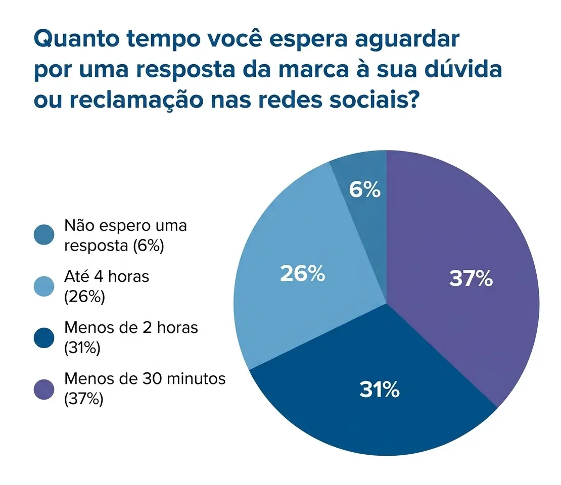 Quase metade espera retorno em menos de 1h. 9 a cada 10 esperam em menos de 4h (!!)